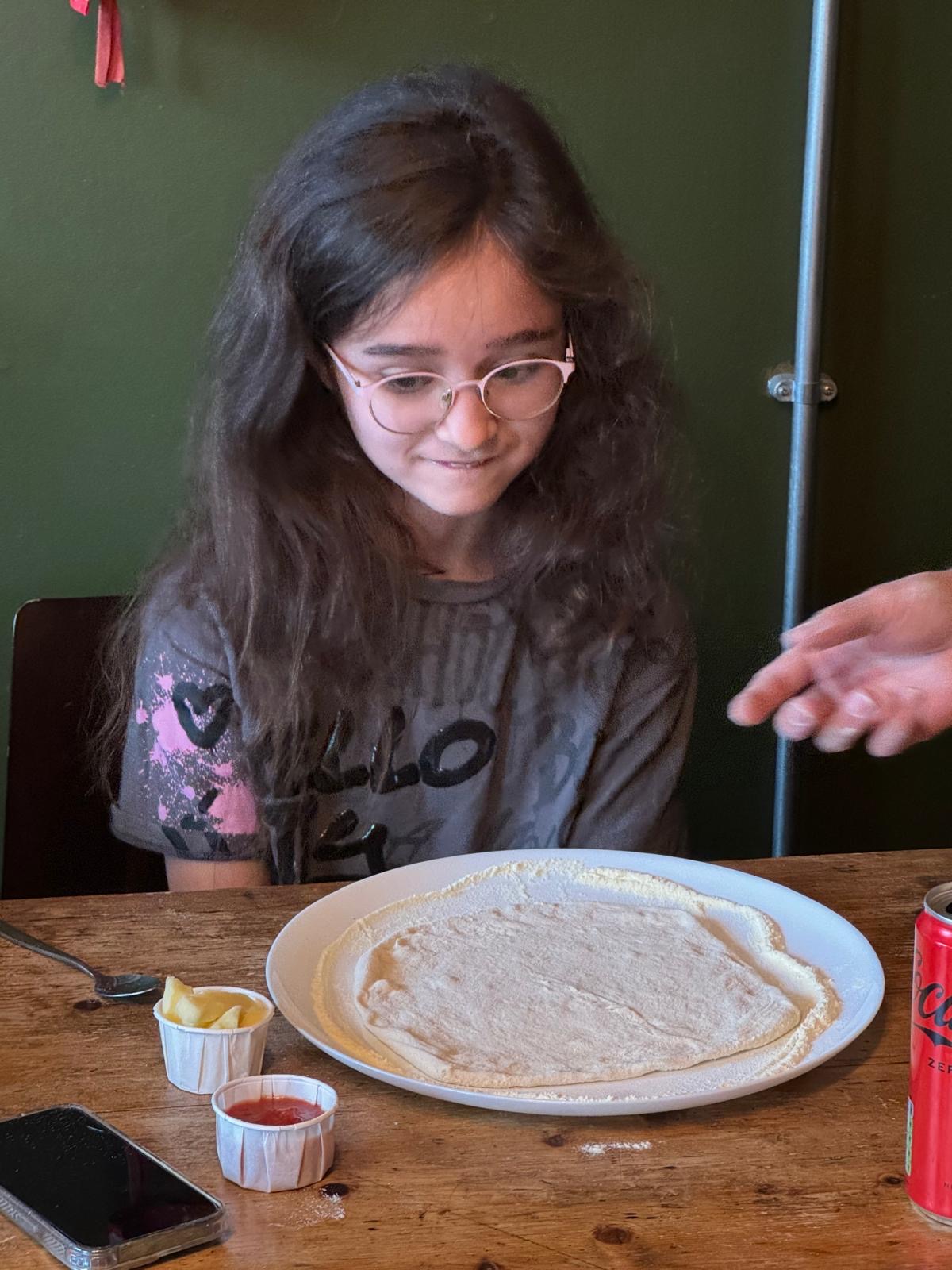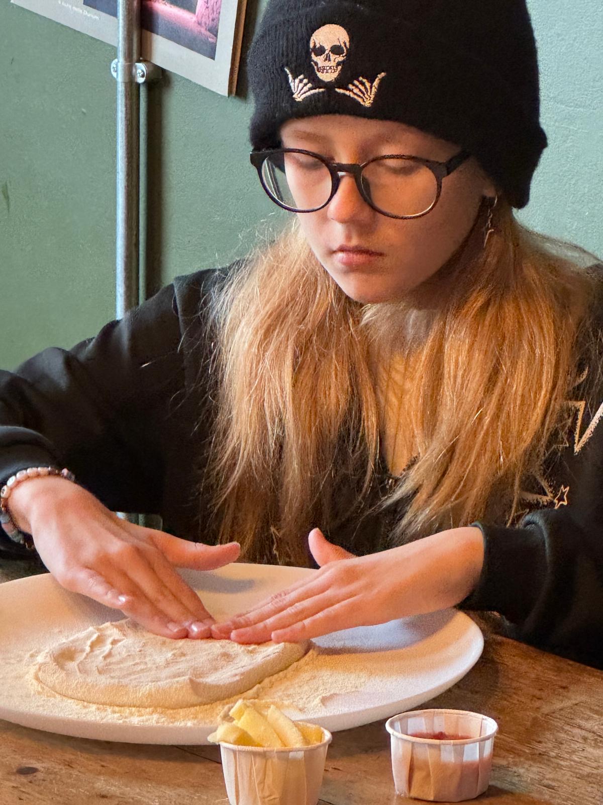Under the expert guidance of the lovely Rustico staff, our families spent the day making, kneading and shaping dough for their pizza bases. The dough was “fun and sticky”, so we heard from one of our children. They all relished the chance to get messy and needed no encouragement to get stuck in.