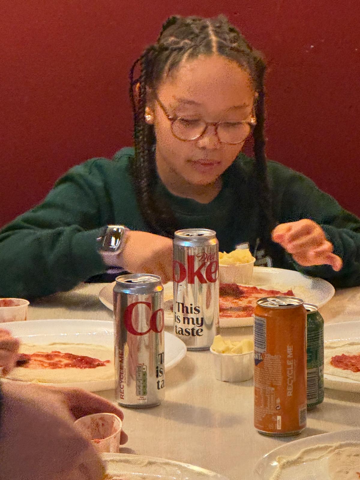 At last, everyone’s rumbling tummies could be satisfied. The pizzas were ready, and we all sat round together to devour them. The chat paused only briefly as we all enjoyed the first few mouthfuls.